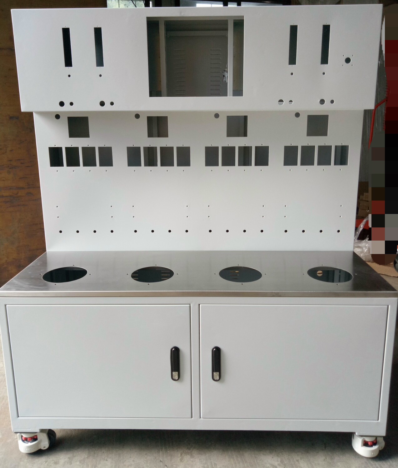 ??3、操作臺(tái)內(nèi)部框架有線纜通孔,或者同等的線纜管理系統(tǒng),可在不同的位置以使布線方便有序,臺(tái)面及主體所采用的非金屬材料應(yīng)當(dāng)具有防火阻燃的性能,各種材料均采用環(huán)保料,保證操作人員的使用安全與健康。